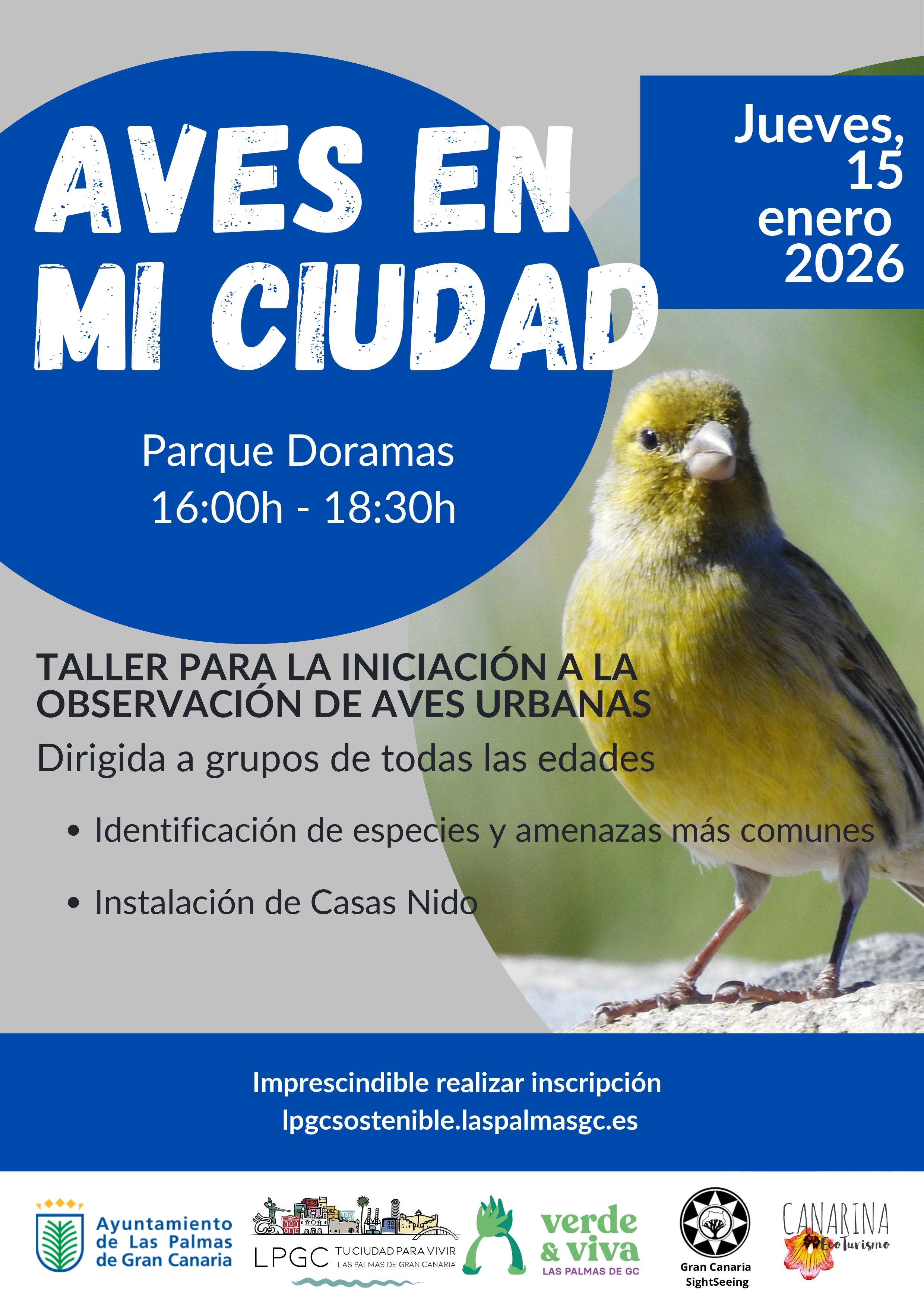 El Ayuntamiento de Las Palmas de Gran Canaria a través de la Concejalía de Desarrollo Estratégico, Sostenibilidad, Energía y Parques y Jardines, retoma los talleres ‘Aves en mi ciudad’ con los que acerca la observación de las aves y la promoción de la protección medioambiental a los parques de la ciudad.