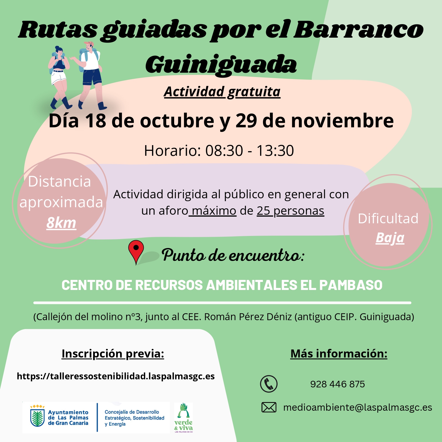 Información e inscripción: https://lpgcsostenible.laspalmasgc.es/inscribete-en-las-rutas-guiadas-por-el-barranco-guiniguada/